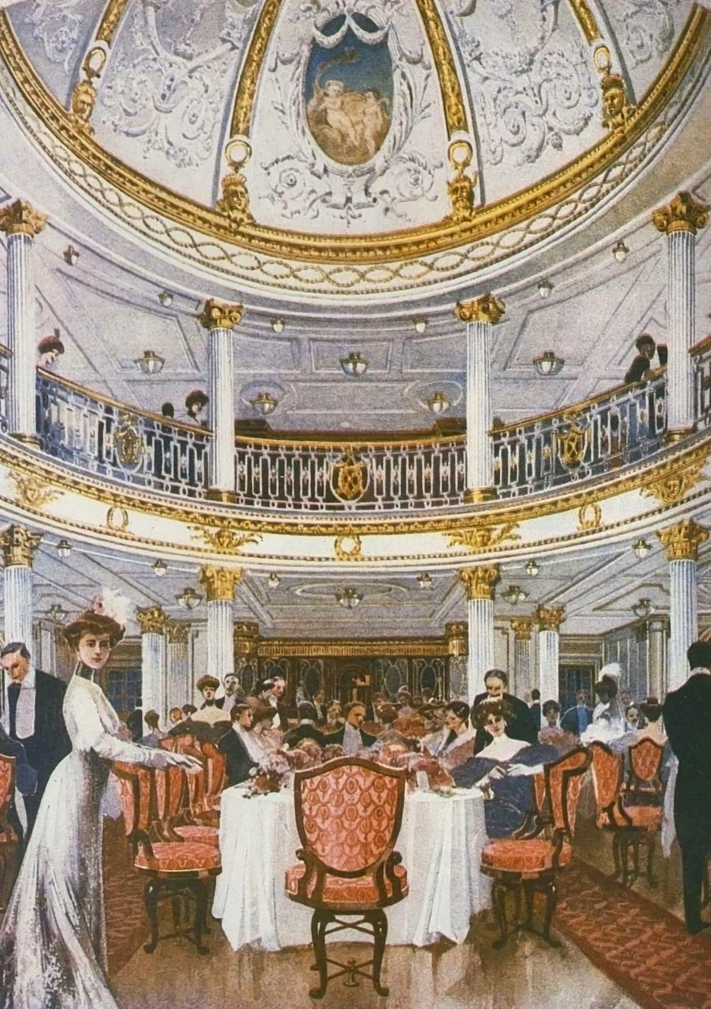 The RMS Lusitania was a British luxury ocean liner. Just take a look at its own marketing material for the ship from the first class dining room: